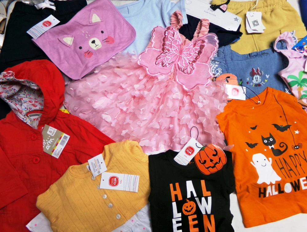 V balení jsou trička,body,overálky,šatičky,kalhoty,mikinky,atd....